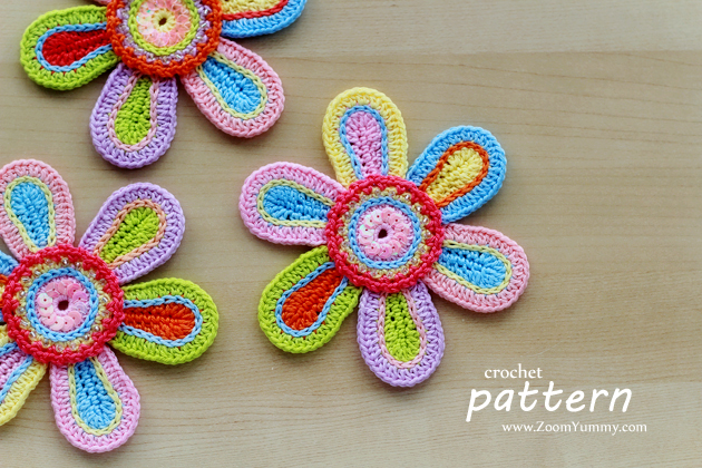 This is a crochet PDF PATTERN for a ‘Colorful Crochet Flower’.